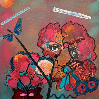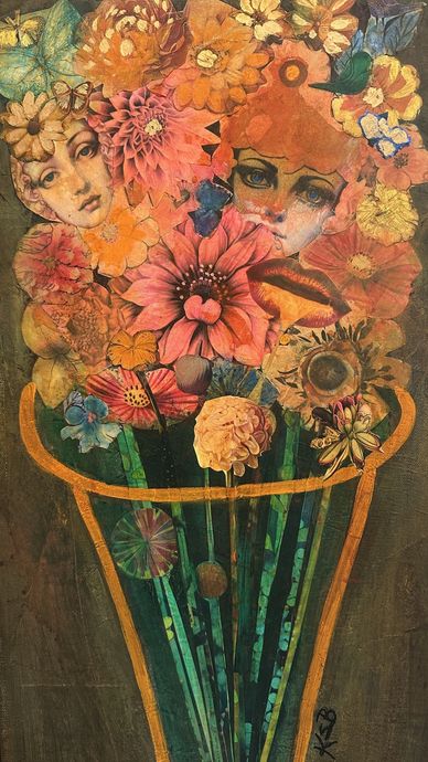 The annual "Judged Members Show" will be held February 18 - March 30, 2026, at the PROTECT Center in Islamorada, FL 33036. Pictured here is "Peekabouquet" , my original mixed media entry.