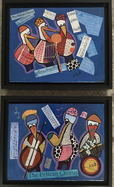 The Dive into Art show will run from January 21 to April 15, 2025. This annual show combines original art by members of the Art Guild of the Purple Isles and children from several schools in the Upper Keys. Shown here is my submission, based on the poem "The Pelican Chorus" Trio and Musicians